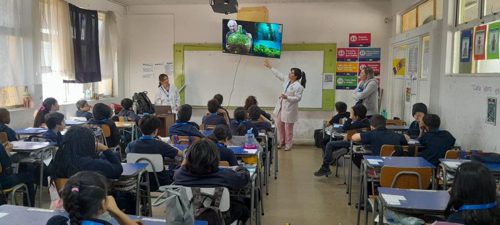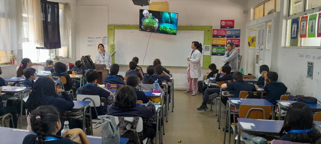 Las sesiones fueron desarrolladas por Valeria Moraga Díaz y Paula Guzmán Brito, encargadas de difusión del proyecto, en colaboración con docentes de Ciencias, Historia y Lenguaje y Comunicación de dicho establecimiento educativo. Este trabajo en conjunto permitió articular distintas áreas del conocimiento en torno a un objetivo común: fortalecer la comprensión de fenómenos ambientales desde edades tempranas, involucrar a nuevas generaciones en el quehacer científico y proponer soluciones creativas a problemáticas de interés global como es el caso de la captura de CO2.